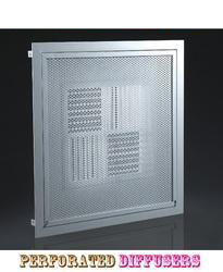 Perforated Diffusers are implemented using frame with flat frontal face of 30mm and inner leaves of aluminium sheets connected by means of metal screws with the frame. Recommended along with exhaust fan installation louvers to open when fan is in operation at duct branches. Designed to prevent rain penetration. Standard or non-standard sizes also available.
